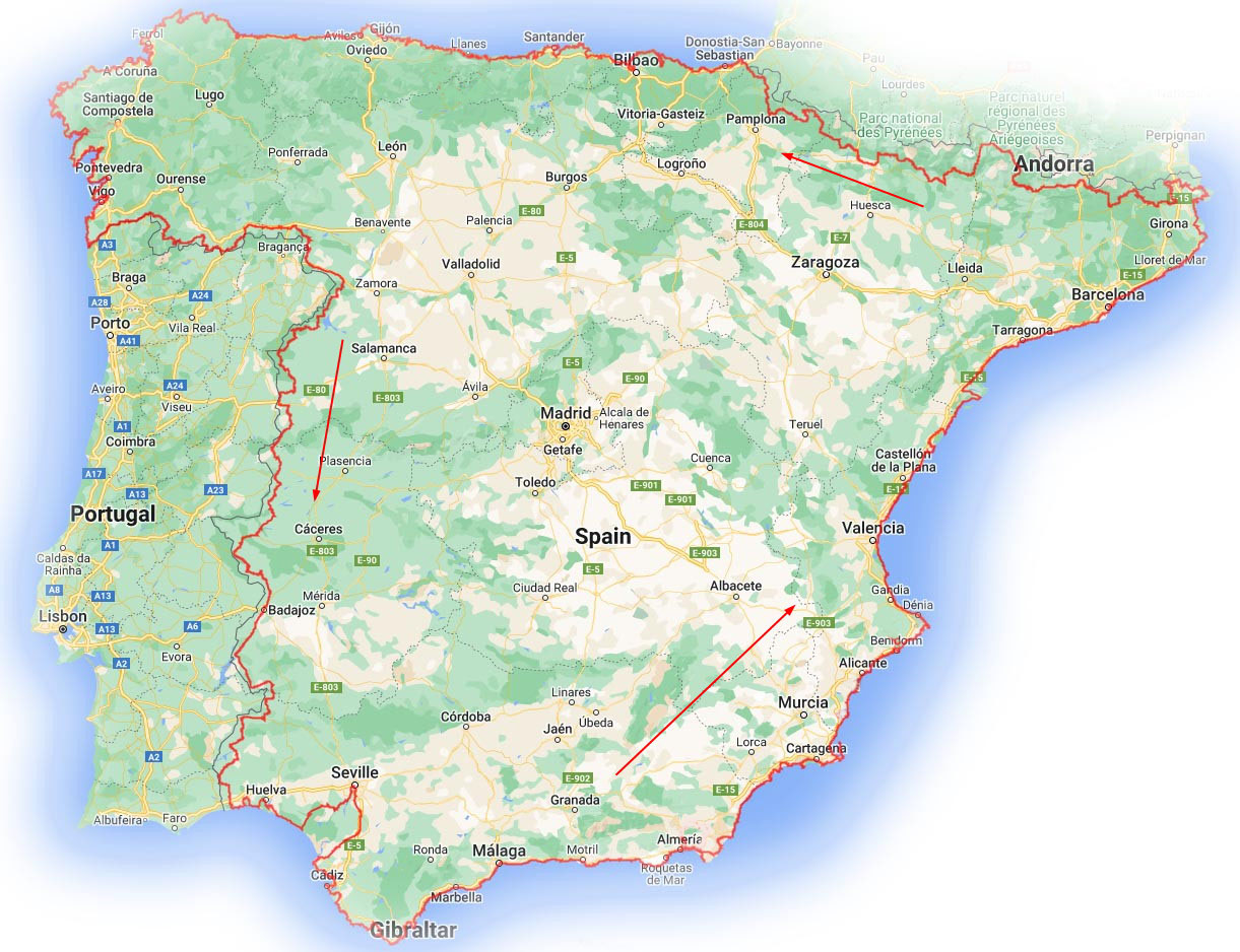 Magnifique boucle de 6200km à faire sur un mois. Le parcours longe les Pyrénées, l'océan atlantique, la frontière portugaise et la méditerranée.