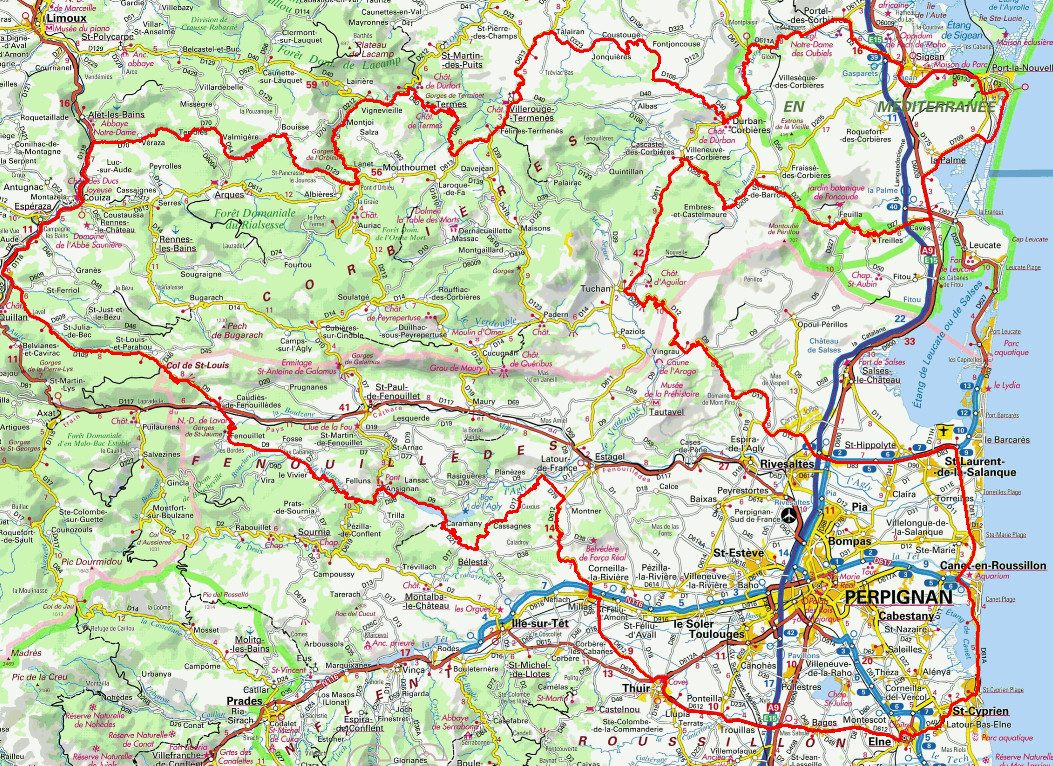 350km à faire sur deux jours en empruntant les petites routes des Pyrénées Orientales et de l'Aude dans le sens des aiguilles d'une montre.